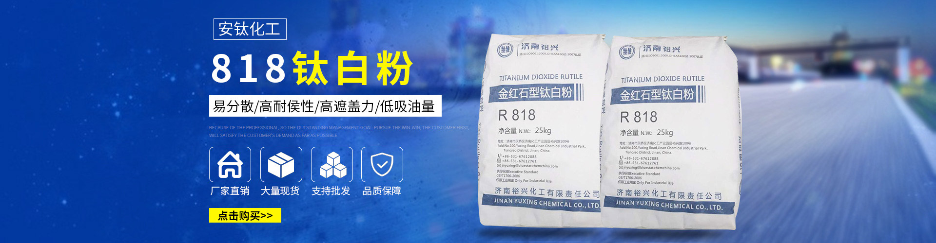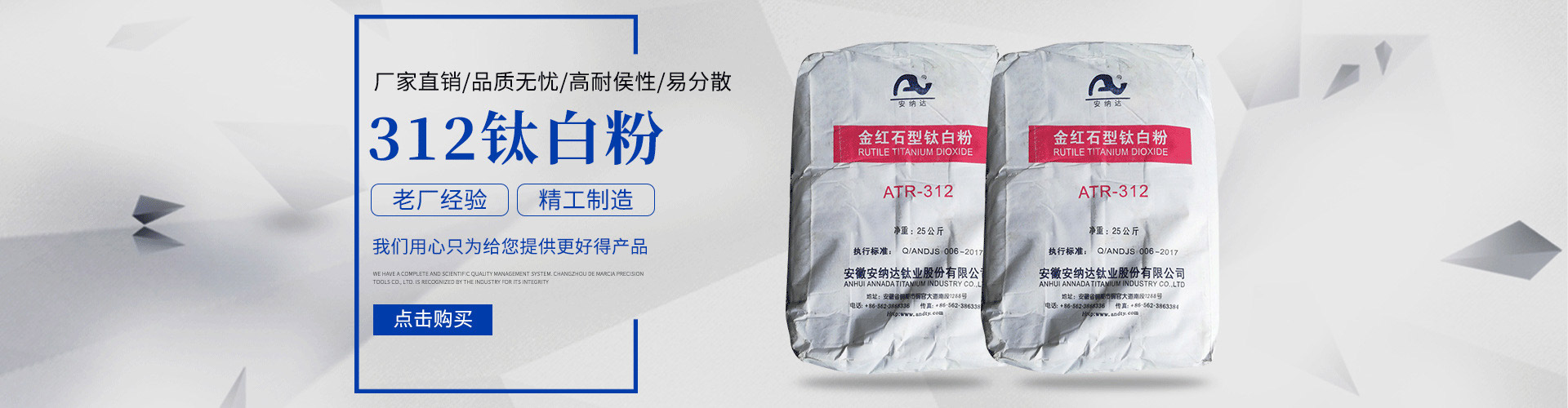 常州安鈦化工有限公司經(jīng)銷(xiāo)批發(fā)的鈦白粉、沉淀硫酸鋇、立德粉、滑石粉、高嶺土、炭黑、云母粉、彩色顏料、氫氧化鈣、硅微粉、氧化鐵紅、氧化鐵黑、金紅石型鈦白粉、銳鈦型鈦白粉、進(jìn)口鈦白粉暢銷(xiāo)消費(fèi)者市場(chǎng),在消費(fèi)者當(dāng)中享有較高的地位,公司與多家零售商和代理商建立了長(zhǎng)期穩(wěn)定的合作關(guān)系。常州安鈦化工有限公司經(jīng)銷(xiāo)的鈦白粉、沉淀硫酸鋇、立德粉、滑石粉、高嶺土、炭黑、云母粉、彩色顏料、氫氧化鈣、硅微粉、氧化鐵紅、氧化鐵黑、金紅石型鈦白粉、銳鈦型鈦白粉、進(jìn)口鈦白粉品種齊全、價(jià)格合理。常州安鈦化工有限公司實(shí)力雄厚,重信用、守合同、保證產(chǎn)品質(zhì)量,以多品種經(jīng)營(yíng)特色和薄利多銷(xiāo)的原則,贏得了廣大客戶(hù)的信任。